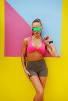 • Fabric deets: Athletic Brushed Nylon has a hella-soft feel on both sides of the fabric. It wicks sweat away and dries quickly so you can slay, Babe.